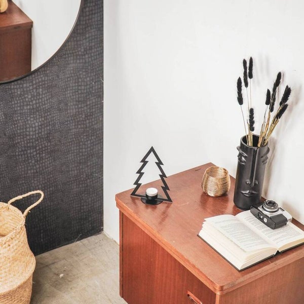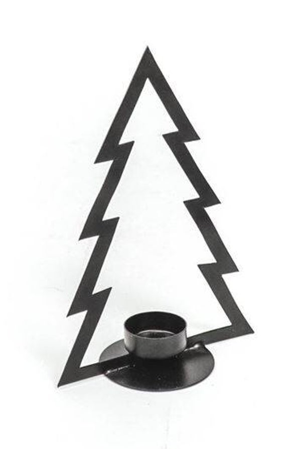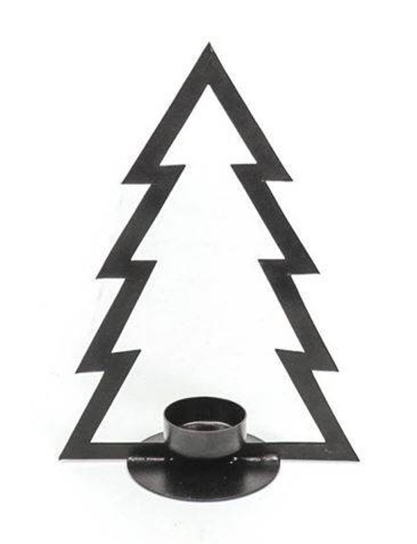 Laat deze zwart kleurige kerstboom kaarsenhouder uit zichzelf stralen en style hem af met een kersttak.