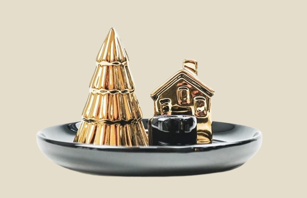 Deze kerstboom en huisje op een bord geven je een instant kerstgevoel. Style het af door wat kleine kerstversiering op het bord te gebruiken.