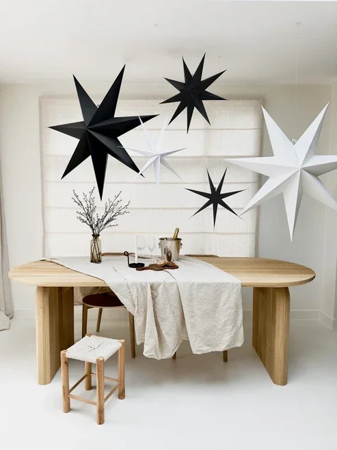 Breng deze kerst de warme sfeer van de feestdagen in huis met onze papieren kerststerren. Verkrijgbaar in verschillende formaten en kleuren, van stralend wit tot chalk beige en krachtig zwart, deze duurzame kerstversiering is perfect voor elk interieur, van modern tot Scandinavisch.
