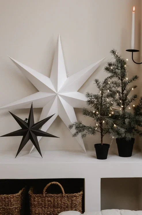 Breng deze kerst de warme sfeer van de feestdagen in huis met onze papieren kerststerren. Verkrijgbaar in verschillende formaten en kleuren, van stralend wit tot chalk beige en krachtig zwart, deze duurzame kerstversiering is perfect voor elk interieur, van modern tot Scandinavisch.