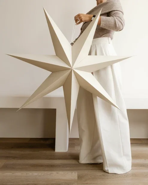 Met hun minimalistische en elegante design passen deze kerststerren zowel in een subtiele als een opvallende setting. Kies een kleinere ster van 45 cm voor een ingetogen look of een grote papieren kerstster van 100 cm voor een echte blikvanger. Onze papieren kerststerren zijn niet alleen stijlvol, maar ook herbruikbaar, waardoor ze een duurzame keuze zijn voor je kerstdecoratie.